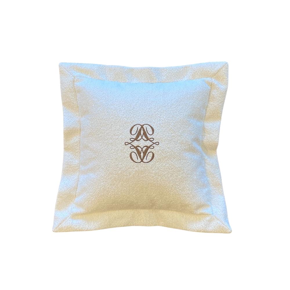 Luxury Dreams valget dekoratiivpatja kaunistab pronksjas monogramm.