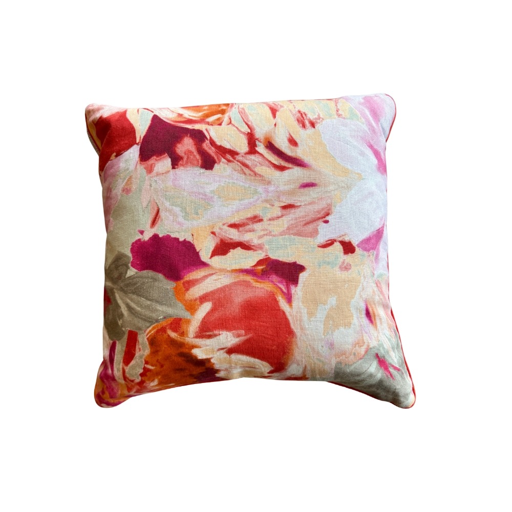 Dekoratiivpadi Flamenco on kirglik värvimäng ja kunstiline elegants, mis toob interjööri soojust, energiat ja karakterit. Sügavad terrakota-, koralli- ja roosad toonid põimuvad maalilise mustriga, luues mulje justkui tantsivast värvide sümfooniast – elavast, sensuaalsest ja lummavast.